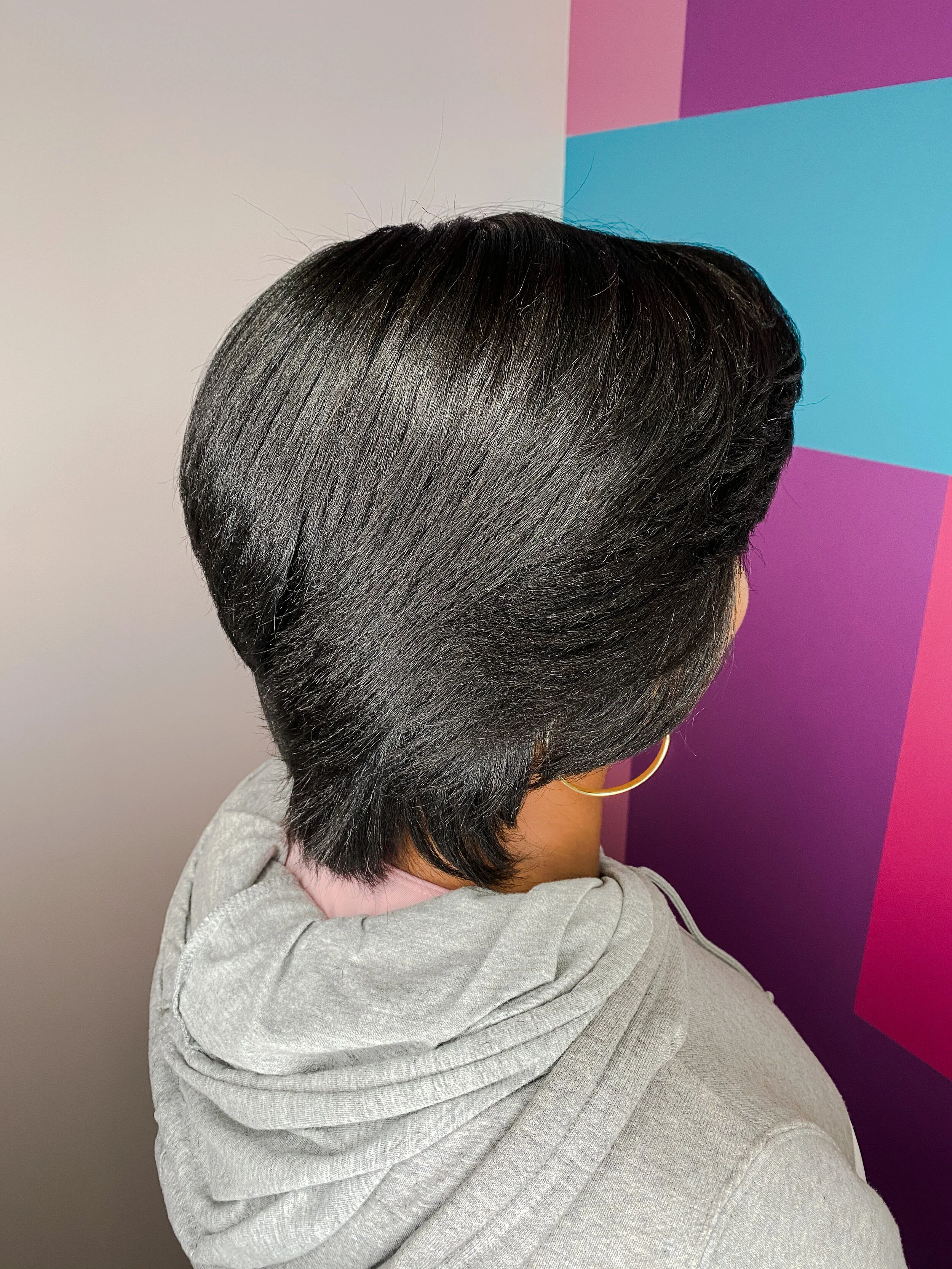 A smooth, lightweight finish that delivers shine and movement without compromising hair health. Our silk press focuses on minimal heat, moisture balance, and lasting results.
